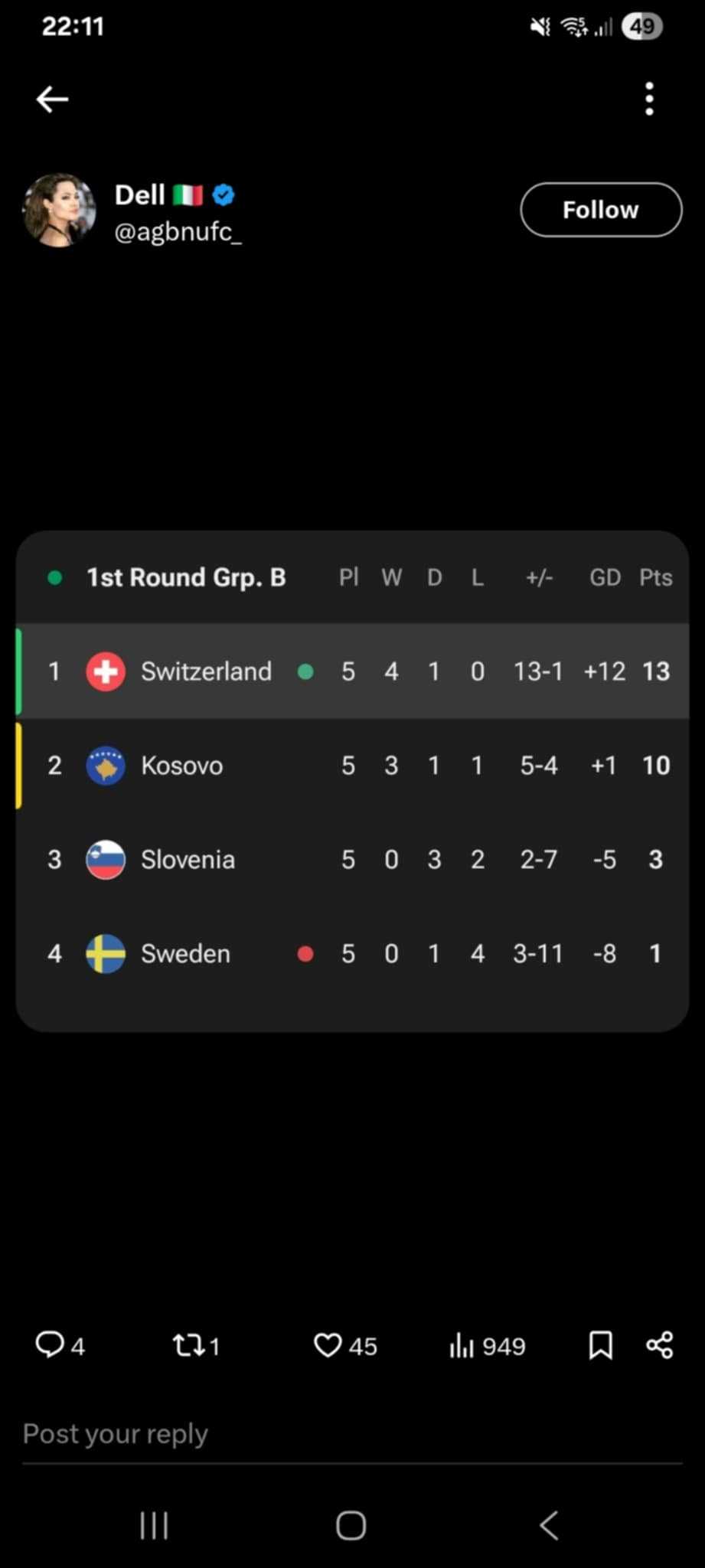 Craig 12321 Posted November 17 Share Posted November 17 Ridiculously Sweden can still qualify! They're in the play offs on account of their Nations League position. 2 Link to comment Share on other sites More sharing options...