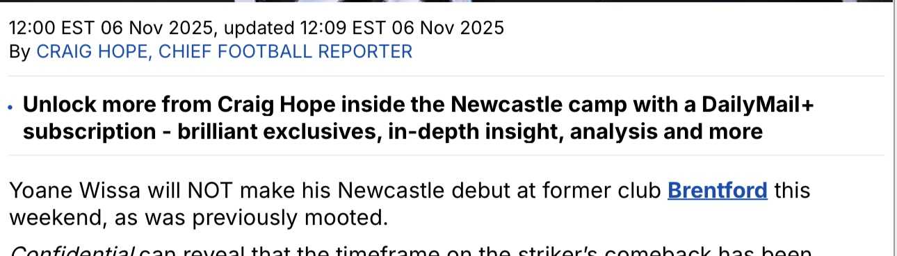 toonotl 4656 Posted October 31 Share Posted October 31 Not sure if this has been mentioned elsewhere yet. Hope reporting we won't see Wissa until after the international break—for the City game at home late Nov or even a week or so later into early Dec. He's training now but building slowly and not yet doing contact work with his teammates. The main problem is what Howe mentioned last press conference that Wissa needs a full six-week preseason to build his fitness. Silver lining is that Hope has gone super strong on reporting that Wissa won't go to AFCON. At least then we'll kind of claw back a few games that he's missed in the first third of the season by having him available for that very busy month of Dec-Jan. 4 Link to comment Share on other sites More sharing options...